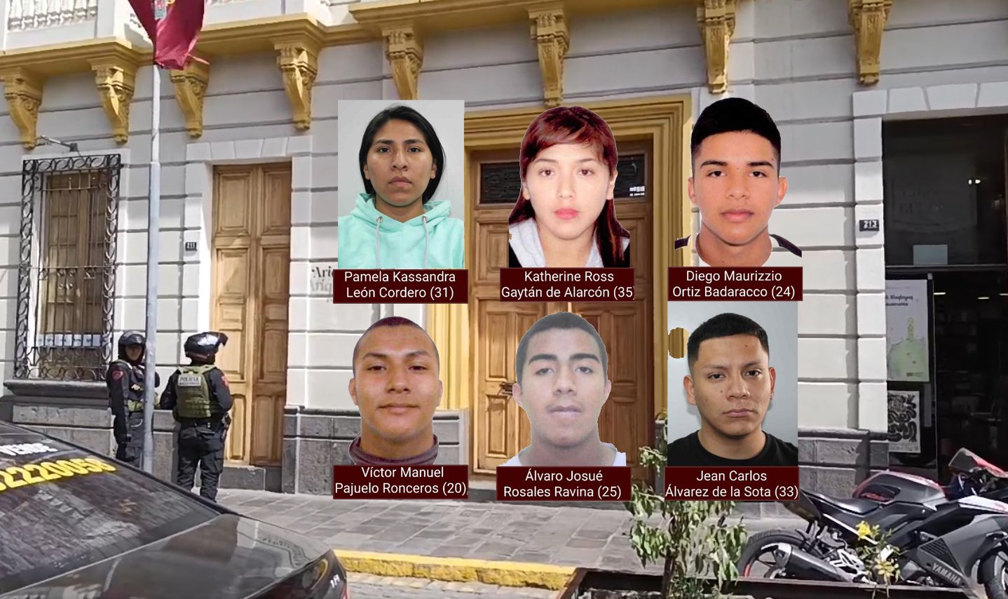 Los presuntos delincuentes fueron identificados como Pamela Kassandra León Cordero (31), Katherine Ross Gaytán de Alarcón (35), Diego Maurizzio Ortiz Badaracco (24), Víctor Manuel Pajuelo Ronceros (20), Álvaro Josué Rosales Ravina (25) y Jean Carlos Álvarez de la Sota (33). Todos fueron intervenidos la madrugada del 23 de agosto dentro de un hotel del Cercado, tras el asalto a una casa de cambios en la avenida Mariscal Castilla.